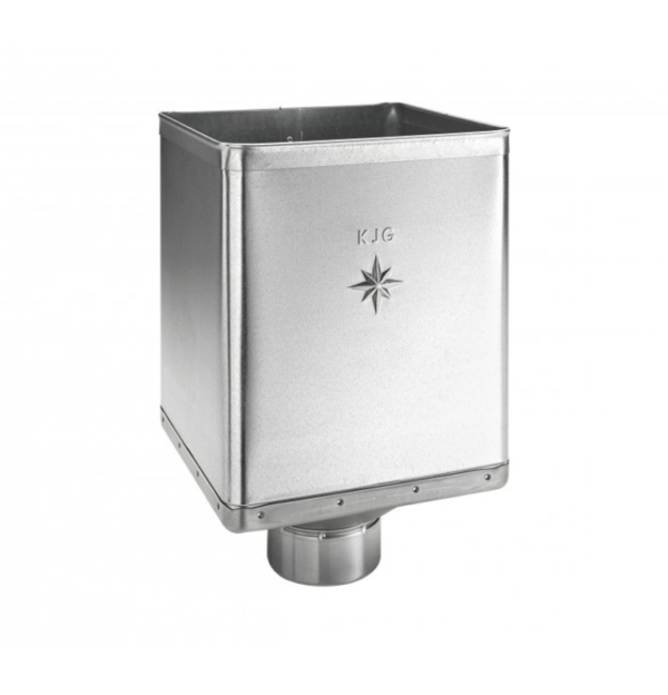 Kotlík zberný DESIGN EXZENTRICKÝ KJG pozink – pre zvodové rúry o priemere 80, 100 resp. 120 mm.