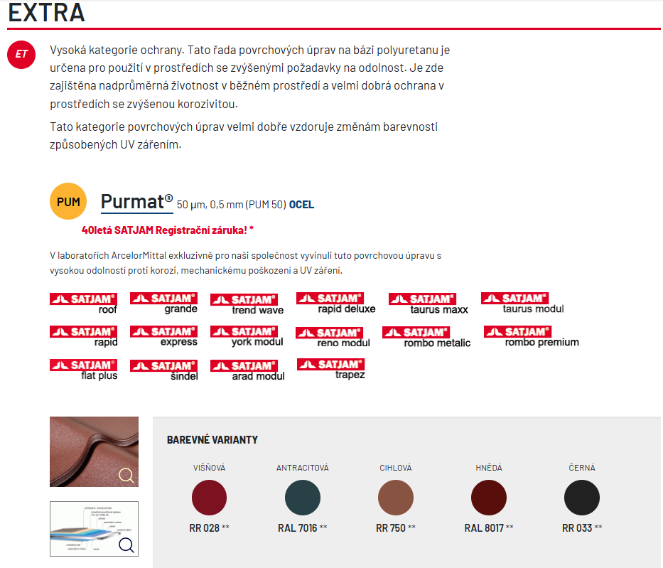 Starosti majiteľov eternitových striech sú s krytinou SATJAM Rombo Metalic navždy preč. Ľahká plechová krytina krovu nepriťaží o nič viac ako pôvodné azbestocementové šablóny, staticky teda vyhovie. Bonusom je, že vzhľadovo zostane strecha bez zmeny. So zmenou materiálu krytiny ale odpadnú starosti s praskaním krehkých šablón a životnosť je zaistená na mnoho rokov dopredu